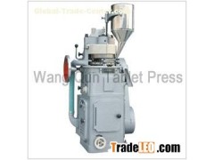 The turntable carries 17(19) sets of molds, and 17(19) tables can be pressed for each rotation. During operation, rotation speed of turntable, depth of filling material and thickness of tablet can be adjusted. Mechanical buffer unit will prevent it from overload damage.